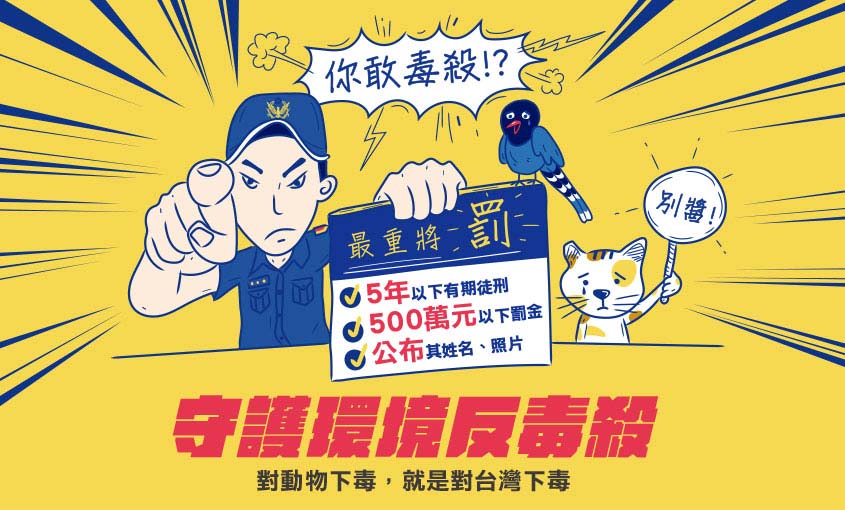 毒殺流浪動物越來越頻繁,造成犬貓大量傷亡,亦間接毒害野生動物;此反生命的惡行,除了觸犯《動物保護法》,更造成恐慌與對立,破壞社會安寧。我們密切關注全台各地的毒殺事件,掌握在地情報並通報機關,同時下鄉進行宣導,早日破除毒殺動物的歪風。