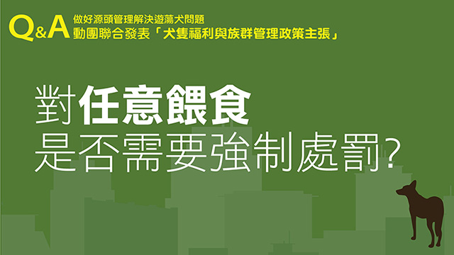 動團呼籲,適當的TNVR、負責任的餵食行為必須以減少流浪狗、提升動物福利為目的,並應參考國際有效之做法,建立犬隻福利與族群管理,才能促進人與動物和諧互動。馬來西亞的一項研究也指出[7],負責任的餵養流浪動物可有助於疫苗接種和絕育計畫。