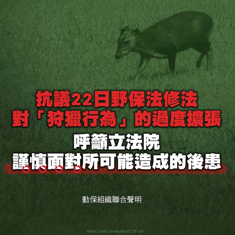抗議3月22日野保法修法對「狩獵行為」的過度擴張,呼籲立法院謹慎面對所可能造成的後患。
