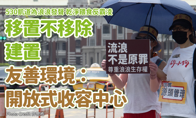 安置遊蕩犬,應兼顧生態環保與人道,由政府建置委外民間經營的「開放式收容中心」,以免排擠目前爆量的公立收容所收容量能,預防「假移除真撲殺」的悲劇,進而引發社會對農委會便宜行事的公憤
