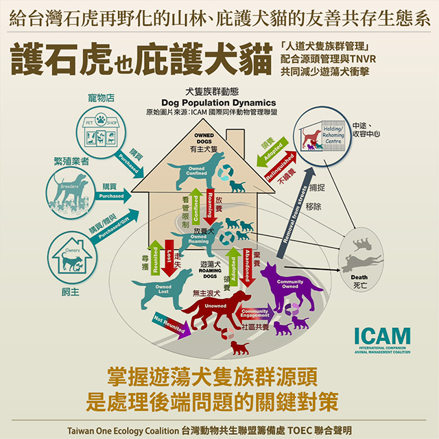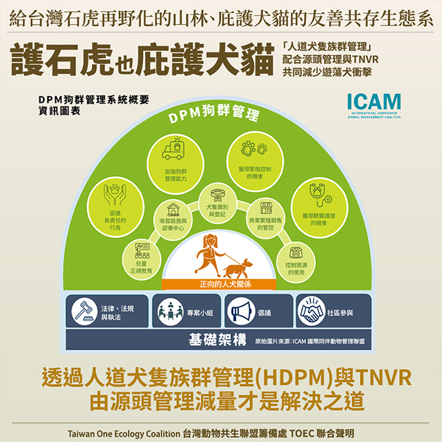 - 以「人道犬隻族群管理」(HDPM) 原則,配合源頭管理與TNVR才能根本解決問題。