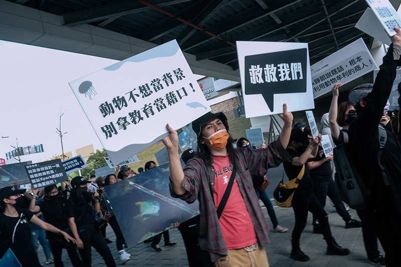 台灣防止虐待動物協會TSPCA、台灣動物平權促進會TAEA、鳥語獸躍帶領上百位民眾在桃園Xpark水族館門口高喊:「動物在受苦,Xpark好退步!」、「Xpark水中煉獄,正視動物處境!」要求Xpark回應動保團體提出的13項訴求,立即停止不符合習性的動物展演,徹底檢討、改善動物處境。現場更有「真人『海豹』水缸繞圈」行動劇,以真人扮演海豹,呈現Xpark館內動物在狹小且不符合物種習性的空間裡的焦慮不安與異常行為。動團也邀請民眾與「水缸牢籠」看板合照、打卡,體驗動物在觀賞窗後的哀愁,並共同 #抵制不良動物展演場所。