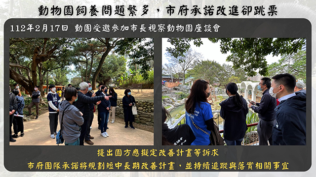 二、請新竹市政府履行承諾,落實動物園的短中長期改善計畫(含後場),並公布時程。