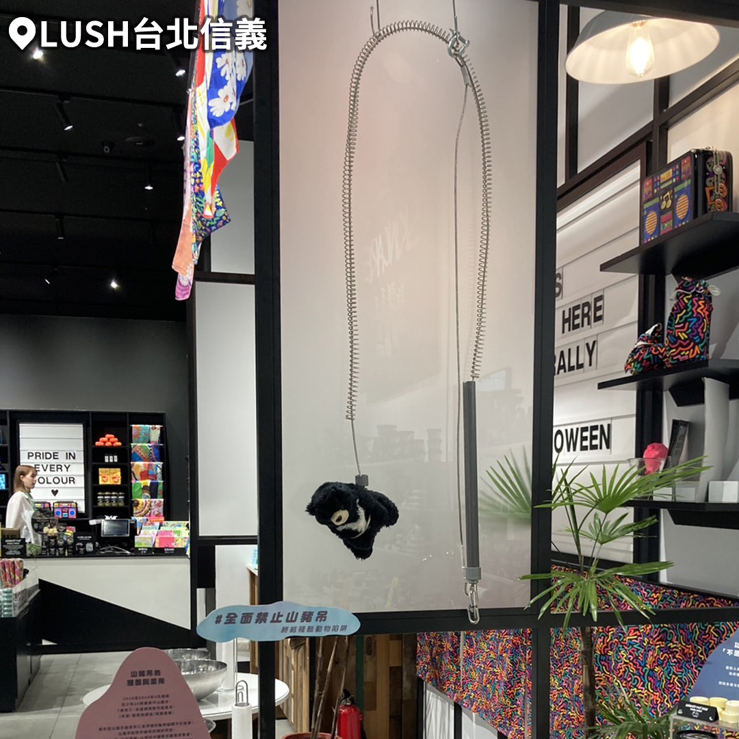 LUSH自創立以來便堅決反對殘忍、不必要的動物實驗,全產品皆為無動物測試。LUSH表示,這次愛心義賣活動,支持全面禁止山豬吊的倡議,拒絕不必要地傷害動物,更響應LUSH長期以來堅定的「零殘忍」、不做動物實驗立場。