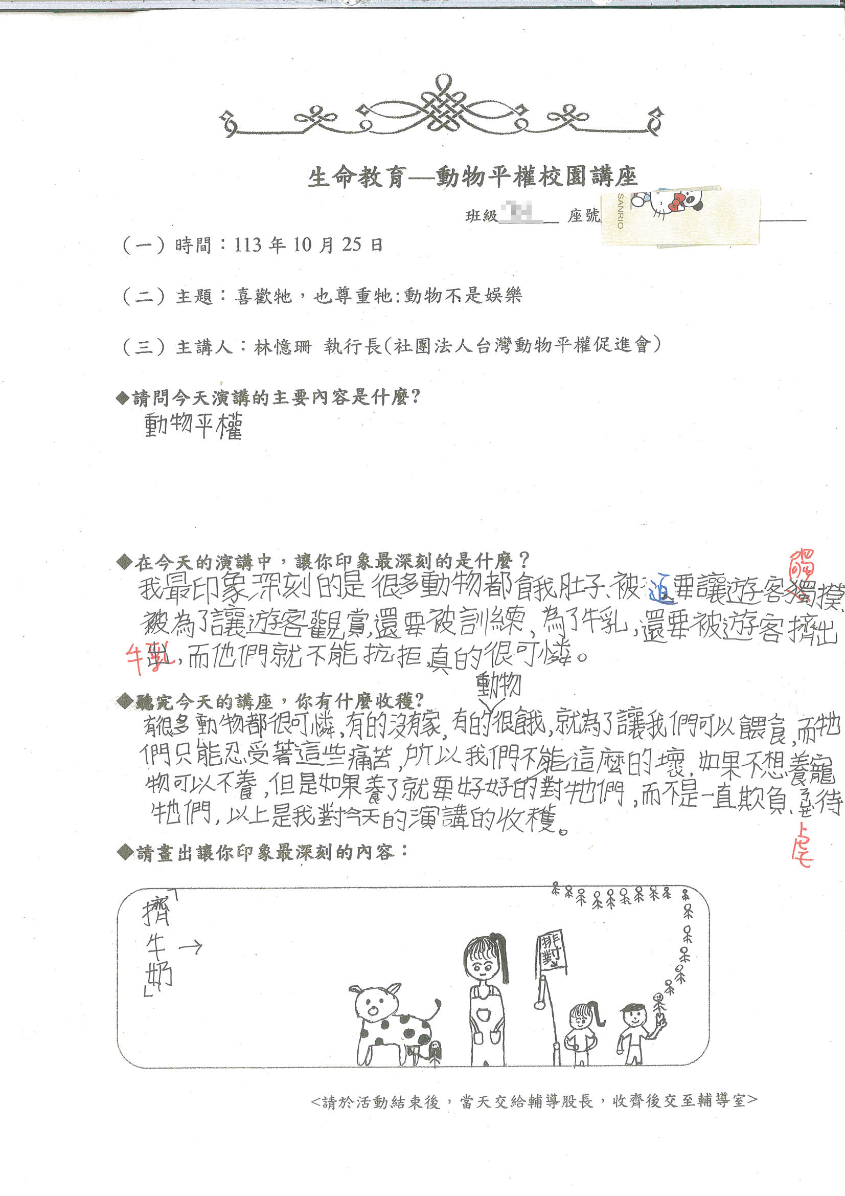 我們相信,此次的宣導活動不僅讓學生看見動物展演背後的問題,也啟發了更多元的思考。如果同學的心中因此種下尊重與同理動物的種子,這將成為未來改變社會對待動物態度的重要起點!
