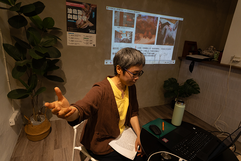 「食色性也」一句話,道出社會文化對感官誘惑的追逐,也點出了我們習以為常的觀看方式。在《粉紅色修羅場:當動物與女性一同失語》系列講座的第二場中,張嘉如以〈肉食色情之後?般若智慧和禪修行的重要性〉為題,延續首場對「去主體化」與「交織性壓迫」的揭露,但她並不打算讓討論停在理論與批判。這一場的重心,是帶領聽眾回到更深的地方,透過般若的洞見與禪修的實踐,逐步鬆動我們根深蒂固的二元思維與階級感,回到更真實、更柔軟的人性深處,重新學習如何看見生命。她提醒,深層動物倫理並不是更激烈的批判,而是一種體會「天地與我同根,萬物與我一體」的連結方式。這種轉向,也許正是擺脫物化與剝削循環的真正起點。