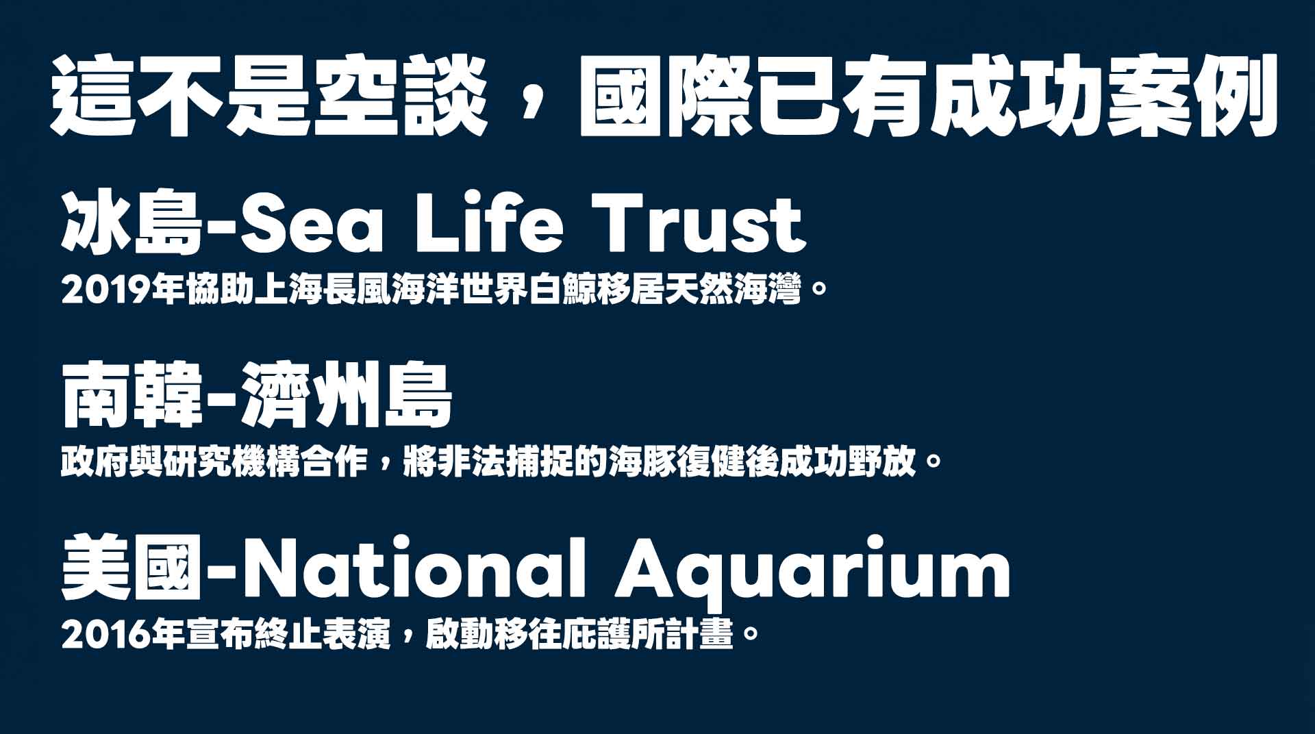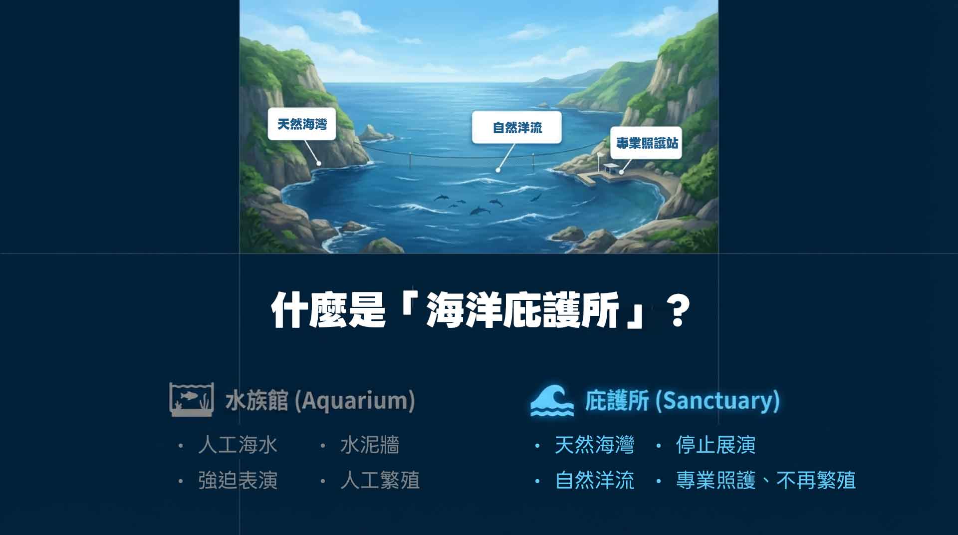庇護所極度稀缺:放眼全球,真正有營運經驗的鯨豚海洋庇護區屈指可數。