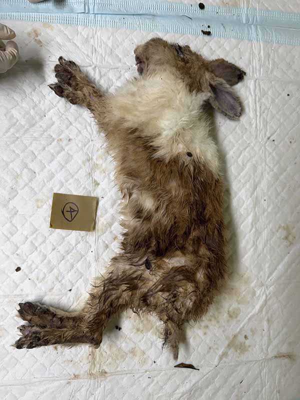 動保處調查後發現死亡兔子多處感染疥癬,出現耳裂、四肢腳底發炎及出血等症狀,腸胃幾乎空腹、無糞便;部分母兔甚至仍處於懷孕狀態。動保處綜合研判:兔子長期處於不當飼養及營養不良環境,罹病後又未即時接受醫療,最終導致虛弱猝死,情節重大。