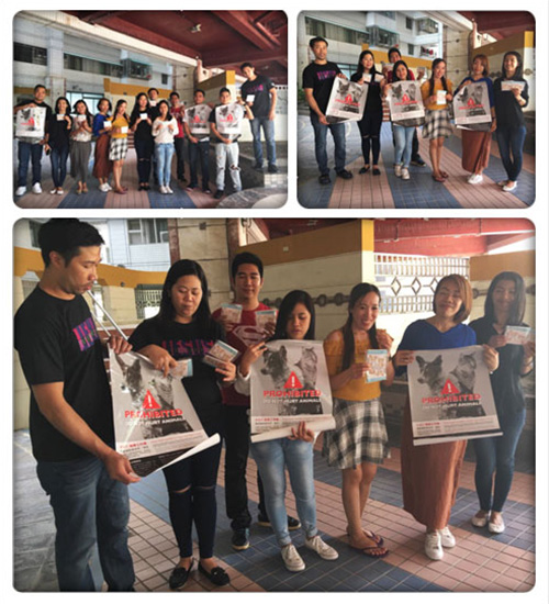 活動回饋:在東南亞移工運動歡樂GO的活動地點,我們擺設及張貼動物保護宣導海報,並用平板電腦播放宣導影片,在頒獎典禮前透過3位雙語人員宣導台灣動物保護法,分享台灣愛護動物的觀念。並讓移工瞭解在台灣不能對動物騷擾、虐待或宰殺,最重會處以2年以下有期徒刑或會拘役,併科新臺幣20萬到200萬以下罰金,如果犯法連自己工作都不保。販賣或食用犬猫屠體,將處新台幣5萬以上25萬以下罰鍰。大家聽完宣導之後,表示紛紛點頭表示瞭解,並且讚揚台灣為動物平權先進的國家,自己回家鄉後也要向家鄉的人宣導這樣的觀念。(感謝財團法人天主教耶穌會台北新事社會服務中心協助宣導)