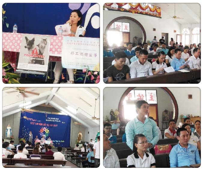 活動回饋:與善化聖家天主堂合辦勞動法令講座,同時發放動保宣導品。當我們向移工簡介台灣動物保護的法律規定,並提及曾有移工因為宰殺貓狗觸法而遭遣返回越南,有些移工露出驚訝表情。透過本活動,我們期待移工來台除了能多瞭解和自己權益切身相關的勞動法令外,也可以增進對台灣法律的認識,避免因飲食文化差異而誤觸法網。(感謝台灣勞工權益關懷協會、台灣國際移民培力協會協助宣傳)