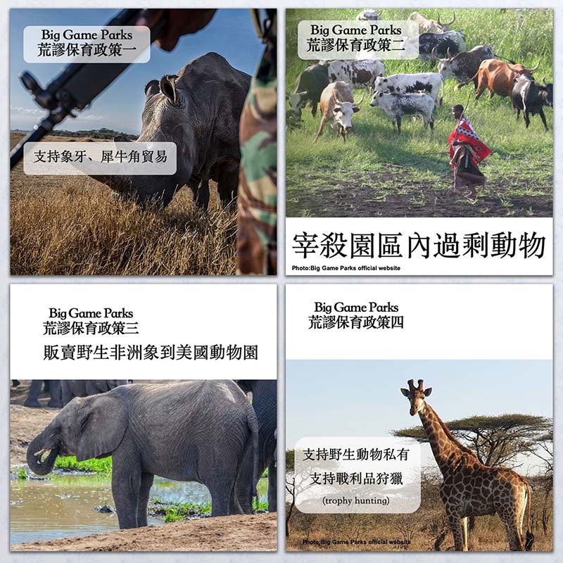 此外,Ted Reilly家族主導的保育策略更是從過去就飽受國際保育專家與團體批評,此家族除了支持象牙與犀牛角貿易及戰利品狩獵(trophy hunting)外,更在2003年以宰殺「過剩」的非洲象作為威脅,成功出售11頭非洲象到美國。2015年Reilly家族食髓知味,不管史國只剩下不到35隻大象,再度以動物過剩為由,讓美國動物園購入17頭非洲象(原本為18隻,其中1隻在出發前因疾病死亡)。如今Big Game Parks故技重施戴上「保育」與「野生動物管理」的面具,爲牟利販售野生動物給三立集團頑皮世界。動保組織嚴正呼籲政府及三立急踩煞車,停止與「魔鬼」的交易。