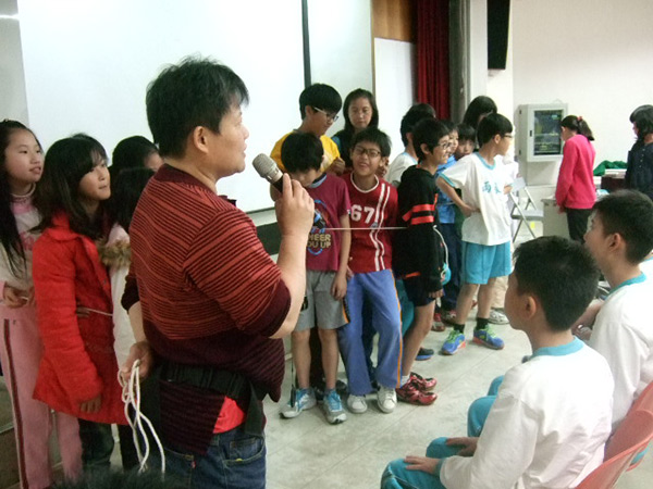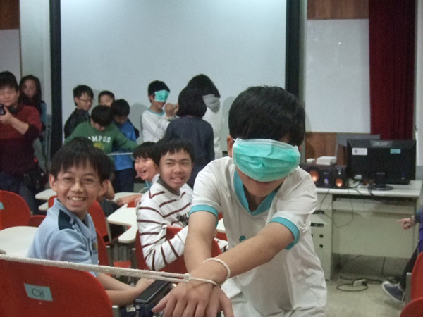 三組5-6位自願嘗試被童軍繩綁在一起限制行動的孩子們,在一開始時,覺得有趣好玩,互相嬉鬧,只是過了短短的3-5分鐘,孩子們開始扭⋯⋯動,嬉鬧的感受消失,被迫綁在一起不舒服的感覺開始浮現,再3分鐘後,已是孩子們的極限。