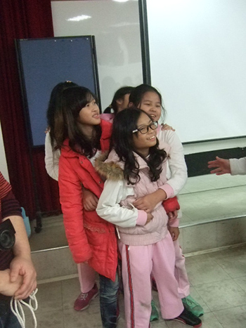 孩子們分享著:「很痛苦覺得失去自由」、「快要不能呼吸」、「很擁擠」「很熱」「很難受」「不舒服」、「覺得被亂摸很不舒服」,「不知走到哪要會被怎麼對待」、「想要把老闆殺掉」、「一定要逃跑即使被抓也要逃」、「解開時了很舒服」、「恢復自由」,「終於可以不用被綁在一起可以好好呼吸」!!