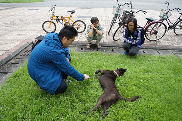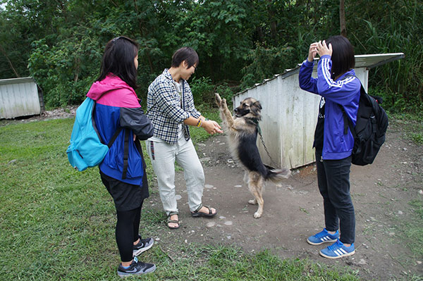 4月29日,本會理事長林憶珊受邀發表演講,主題為「城市發展下的動物處境:連流浪也不允許的極度邊緣」,正是「敖屋福利社」所關注的議題。在開講之前,社長林雅淯帶我們一一訪視狗兒,由於校地廣闊,走路可走到天荒地老,因此我們騎腳踏車出發,簡單繞一圈就要一個多小時,可見社員們平常的認真辛苦。