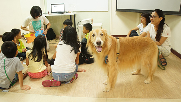 台灣動物平權促進會舉辦的「親子說故事給狗狗聽閱讀計畫」,共有3個梯次、15堂課程,56位小朋友和家長熱情參與。透過講解、體驗、遊戲等方式,引導孩子觀察動物的行為,學習與動物和諧相處。