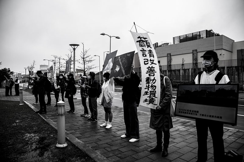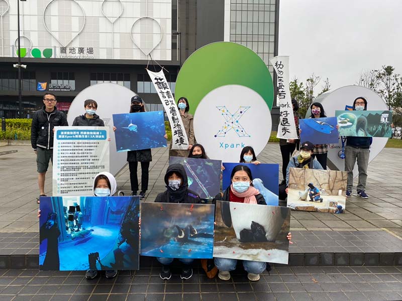 我們沒有足夠資源逕行改善xpark對動物造成身心傷害的展演空間,也沒有政府公權力從嚴稽查動物展演場所、裁罰或讓xpark停業直到改善,我們能做的,就是一次次實地調查、蒐集證據,為動物權益請教國內外專家,還有像今天一樣,號召志工走上街頭,讓業者和更多人聽見、看見並深刻意識到這些海洋動物不該在XPARK受苦