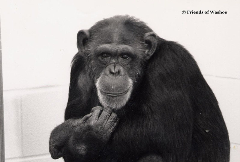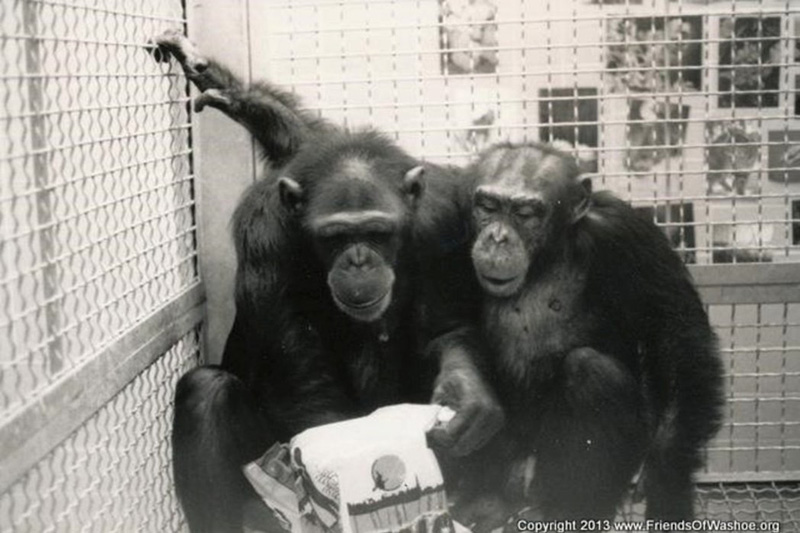 1965年,美國一對夫婦收養了一隻10個月大的黑猩猩,把她當作聾啞小孩一般養育,在生活中使用美式手語。幾年之後,黑猩猩通過了嚴苛的檢驗標準,被譽為「世界上第一隻能夠使用人類手語的黑猩猩」,受到各界矚目。牠的名字,叫作華秀(Washoe)。