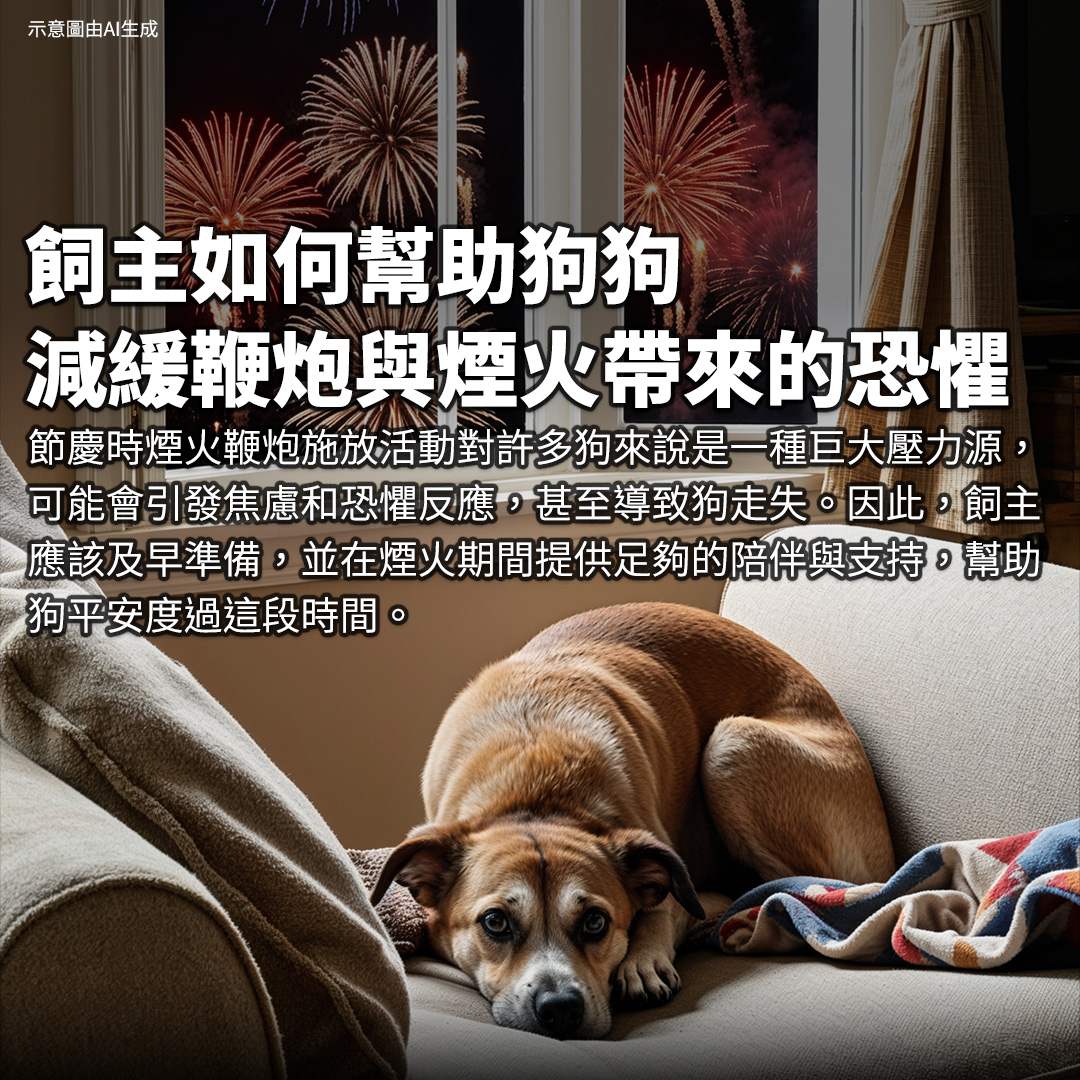 若飼主未能正確處理這樣的情況,狗狗可能會出現嚴重的焦慮反應,並試圖逃離現場,這對牠們的安全構成極大的風險。因此,如何幫助家中的狗平安度過這些節日,並減輕牠們對煙火和鞭炮的恐懼,是每位飼主都應該深入了解的課題。