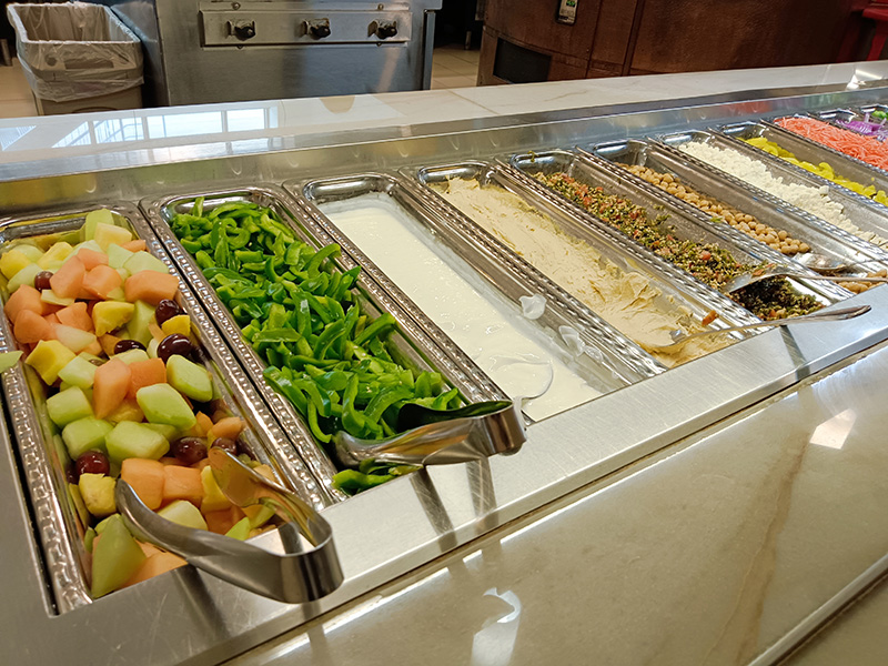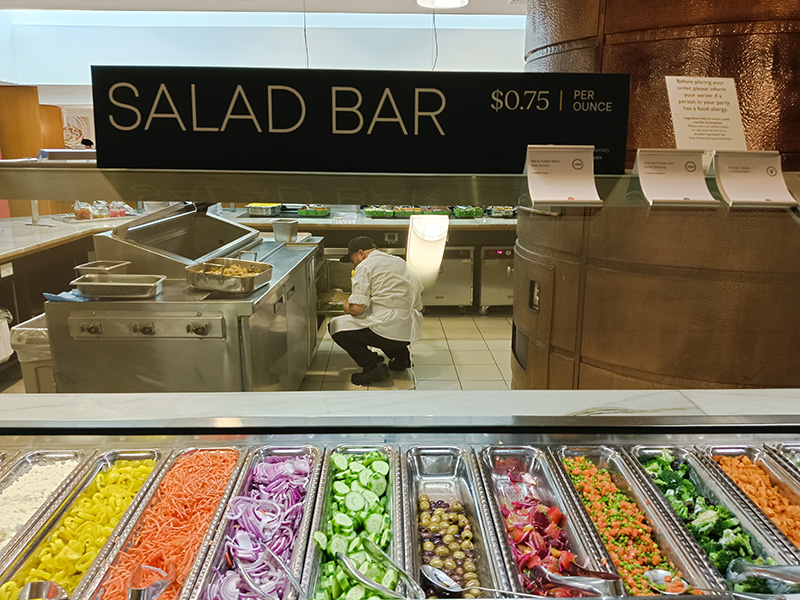 我細看沙拉、熱菜、主食等區域,每道菜的說明牌上都有個小圓圈,裡面大多寫著「VGN」,很少數則寫著「V」。