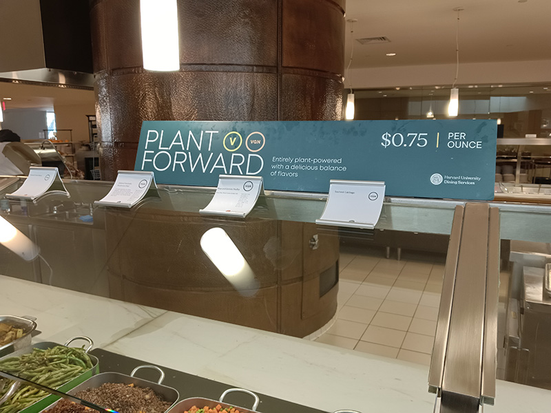 來到哈佛法學院的學生餐廳,最醒目也隨處可見的大字就是Plant-Forward。對大多數使用中文的人而言,這個概念很陌生,有時譯為「植物領先」,意思是大力鼓勵以植物性食物為主的飲食方式,比Plant-Based Diet(有些人譯作「植物基飲食」)更帶有積極意義。