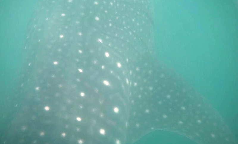 尋鯊人一般依靠太陽照射在海平面上反射出的陰影來判斷鯨鯊的蹤跡,所以,當鯨鯊在水底5米以下時,反射出的陰影就不容易被發現,或者當陰天的時候,鯨鯊所反射出的陰影不是十分明顯,他的蹤跡也就會相對難以發現了。當尋鯊人發現鯨鯊的蹤跡時,會向船長大聲喊叫Butanding(Butanding在菲律賓Donsol當地土語中的意思就是鯨鯊)來提示大家發現了鯨鯊,這時,BIO就會提示Diver穿戴好浮潛用具,坐在船舷的一側隨時準備跳入水中,如果不善於潛水,或者根本不會游泳,船家也會很貼心的準備好救生背心讓遊客放心地跳入海中去欣賞這溫柔的海中巨人