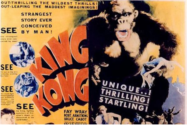而另一部經典電影作品《金剛》(King Kong),在1933年、1976年、2005年三個時代,就分別有三種不同的版本。其中共通的結局是,金剛最後都爬上了帝國大廈的屋頂,被飛機擊落致死。然而,三個版本的差異卻揭示了截然不同的意圖與效果。