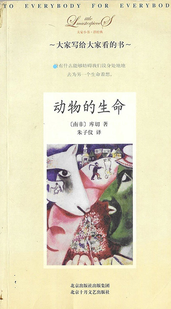 著名南非小說家,文學教授柯慈(John Maxwell Coetzee),是2003 年諾貝爾文學獎得主。其著作關注社會正義(反對南非種族隔離),包括個人在歷史潮流下的命運以及政治經濟結構中「惡的問題」(problem of evil)。《動物的生命》(The Lives of Animals)原是來自 1997 年柯慈在普林斯頓大學的演講稿。他一方面從哲學觀點來批評冷血的理性主義,另一方面流露出個人對於非人動物(nonhuman animals)被人類迫害在內心的傷痛。