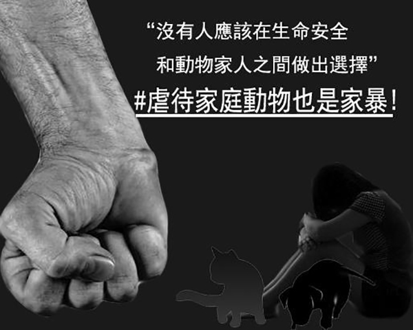 在機緣巧合之下得知我國衛福部在2011年時曾行文給各機關以特別關注"家暴與虐待家庭動物"之因應,接著在社區、志工組織與國際動保組織間都獲得同樣的論述,更在2017年有幸與家防中心、婦援會合作友善路人甲計畫時獲知有大量社工師在家訪時關注到了家庭動物的情況同樣不樂觀,進而開始關注家暴與家庭動物受虐的高度相關聯。