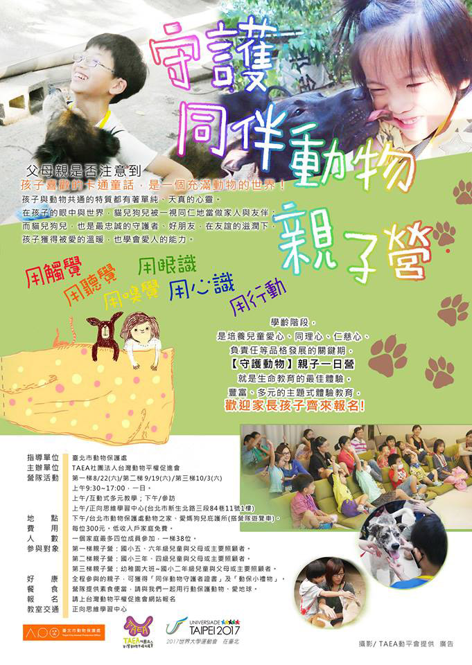 - 「兒童與同伴動物家人支持計畫」由新北投義方國小輔導室范建福主任、簡玉如等三位老師協力本課程活動進行。