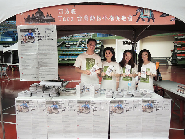 - 響應<不要再有下一個花花>貼海報發文宣行動,本會與四方報於桃園小巨蛋於「越菲印泰─鄉聚桃園」四國文化節擺攤向移工宣導台灣動物保護的法令。1000人次